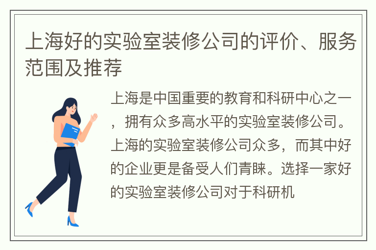 上海是中国重要的教育和科研中心之一,拥有众多高水平的实验室装修公司。上海的实验室装修公司众多,而其中好的企业更是备受人们青睐。选择一家好的实验室装修公司对于科研机......【点击详情】