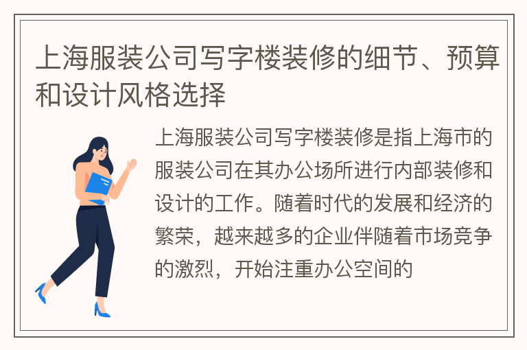 上海服装公司写字楼装修的细节、预算和设计风格选择