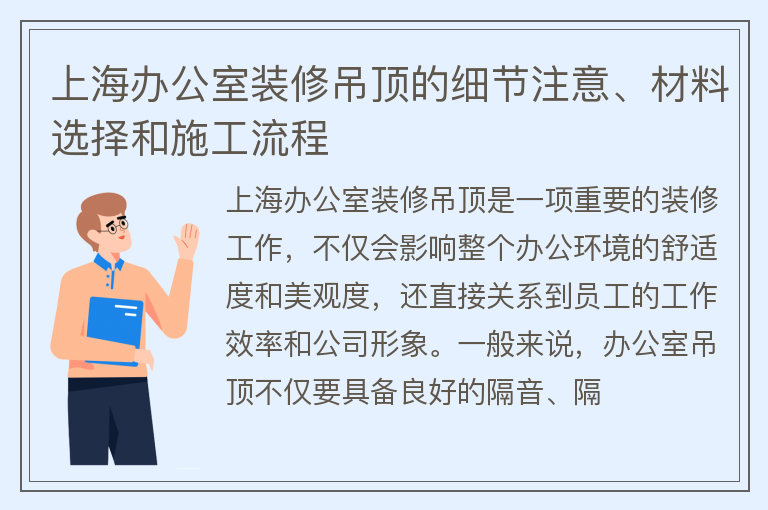 上海办公室装修吊顶的细节注意、材料选择和施工流程