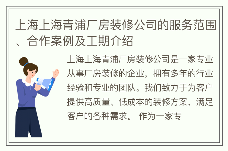 上海上海青浦厂房装修公司的服务范围、合作案例及工期介绍