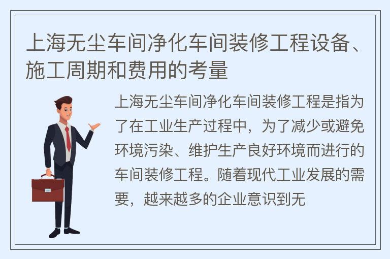 上海无尘车间净化车间装修工程设备、施工周期和费用的考量