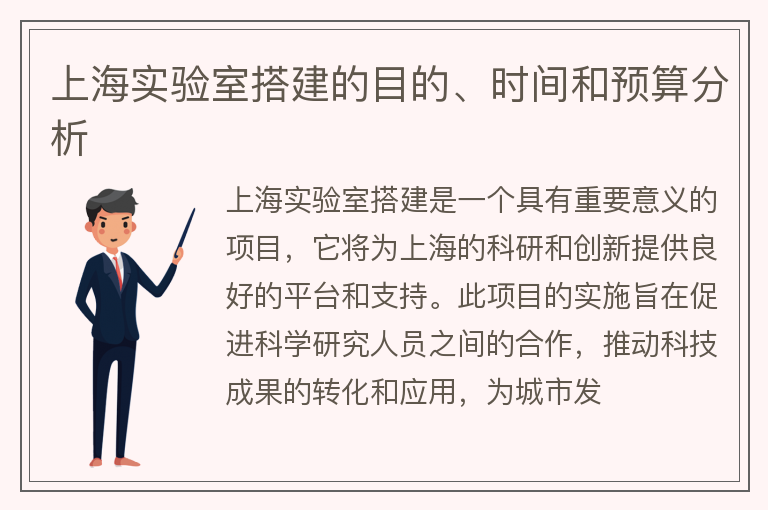 上海实验室搭建的目的、时间和预算分析