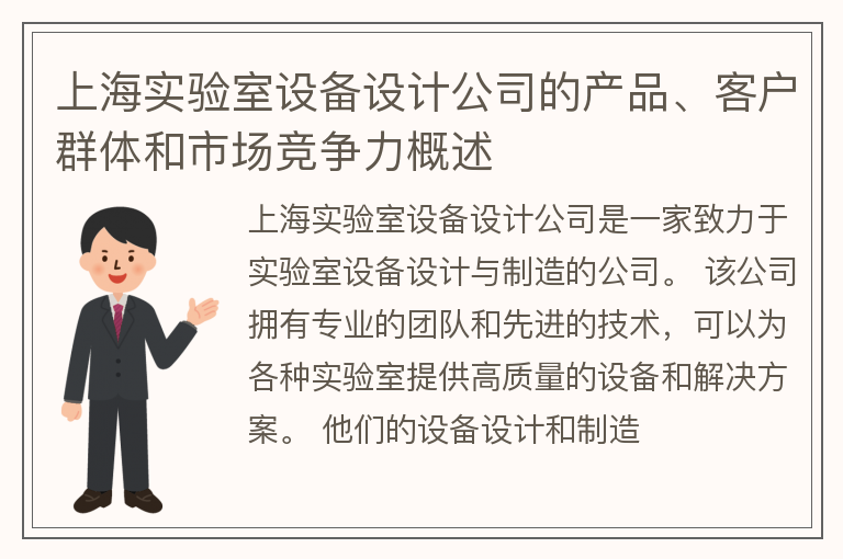 上海实验室设备设计公司的产品、客户群体和市场竞争力概述