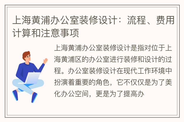 上海黄浦办公室装修设计:流程、费用计算和注意事项