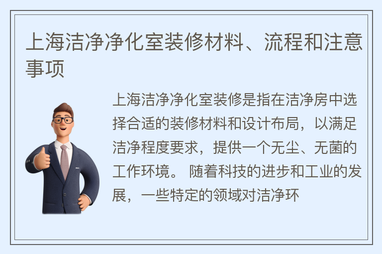 上海洁净净化室装修是指在洁净房中选择合适的装修材料和设计布局,以满足洁净程度要求,提供一个无尘、无菌的工作环境。 随着科技的进步和工业的发展,一些特定的领域对洁净环......【点击详情】