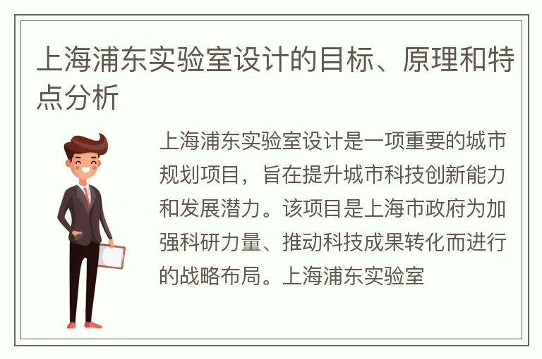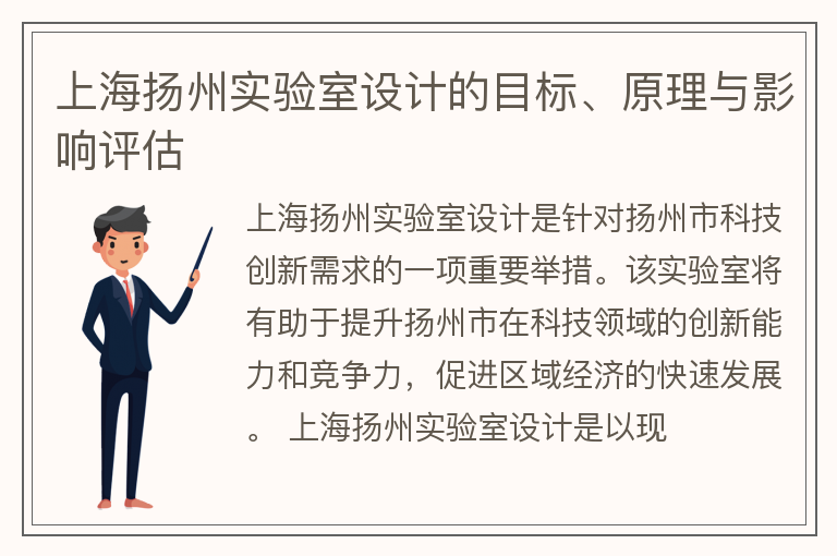 上海扬州实验室设计是针对扬州市科技创新需求的一项重要举措。该实验室将有助于提升扬州市在科技领域的创新能力和竞争力,促进区域经济的快速发展。 上海扬州实验室设计是以现......【点击详情】