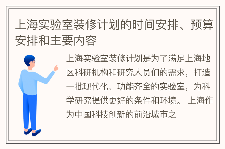 上海实验室装修计划的时间安排、预算安排和主要内容