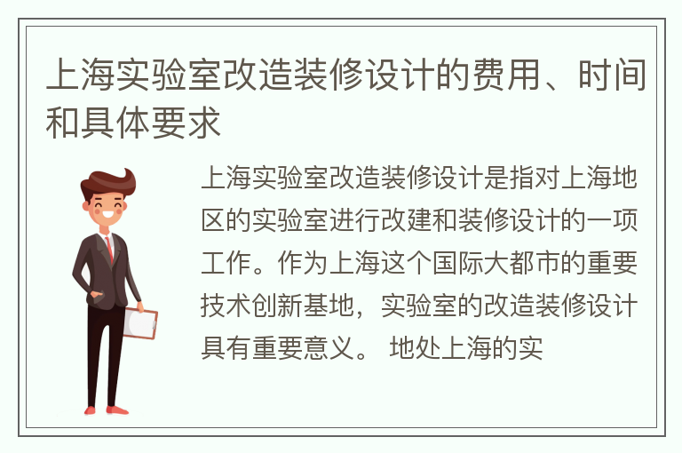 上海实验室改造装修设计是指对上海地区的实验室进行改建和装修设计的一项工作。作为上海这个国际大都市的重要技术创新基地,实验室的改造装修设计具有重要意义。 地处上海的实......【点击详情】