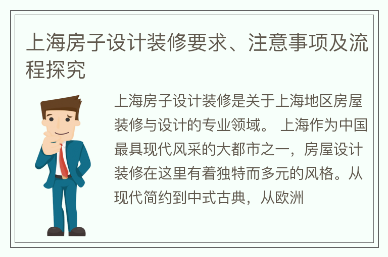 上海房子设计装修是关于上海地区房屋装修与设计的专业领域。 上海作为中国最具现代风采的大都市之一,房屋设计装修在这里有着独特而多元的风格。从现代简约到中式古典,从欧洲......【点击详情】