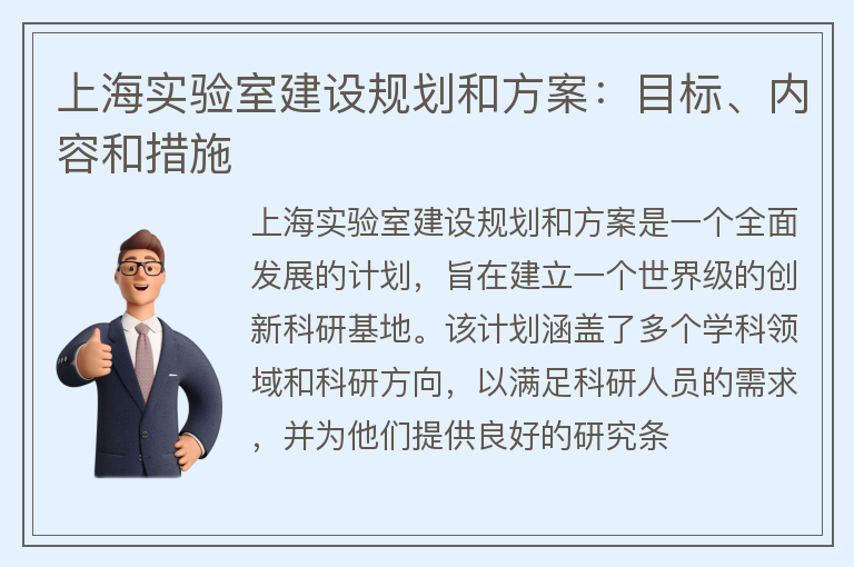 上海实验室建设规划和方案:目标、内容和措施