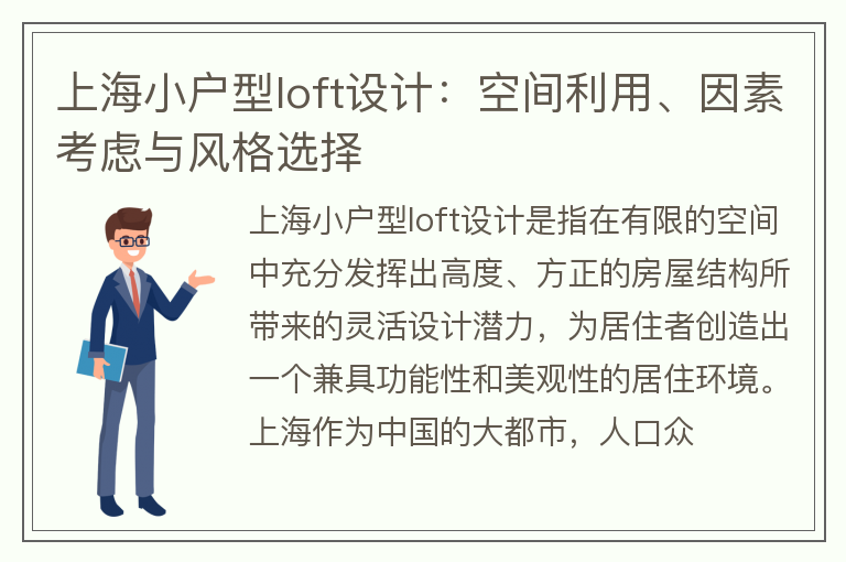 上海小户型loft设计:空间利用、因素考虑与风格选择