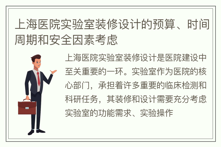上海医院实验室装修设计的预算、时间周期和安全因素考虑