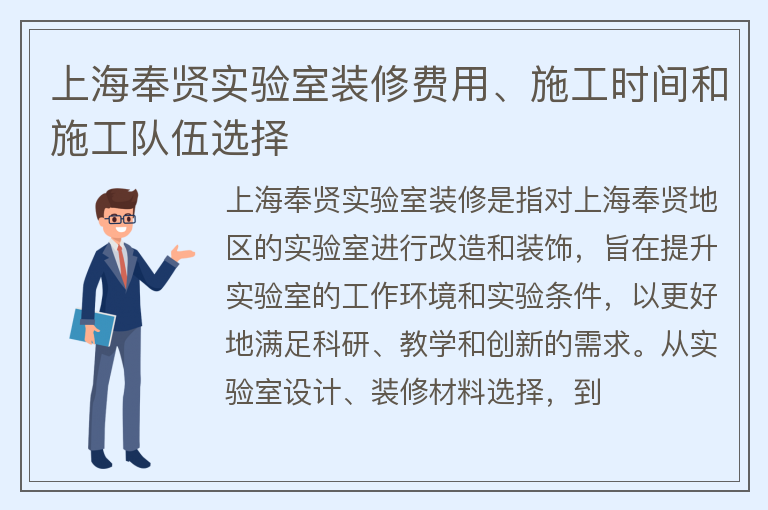 上海奉贤实验室装修费用、施工时间和施工队伍选择