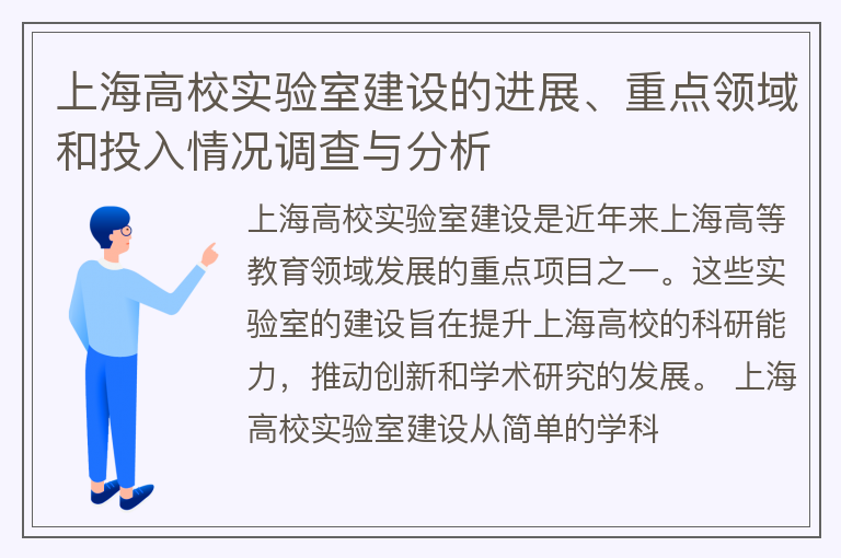 上海高校实验室建设的进展、重点领域和投入情况调查与分析