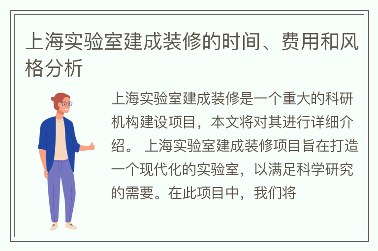 上海实验室建成装修的时间、费用和风格分析