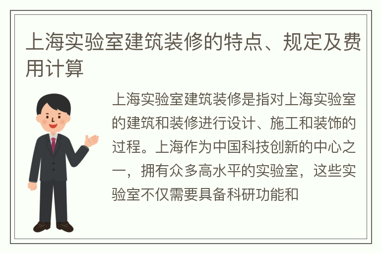 上海实验室建筑装修的特点、规定及费用计算