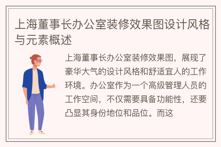上海董事长办公室装修效果图设计风格与元素概述
