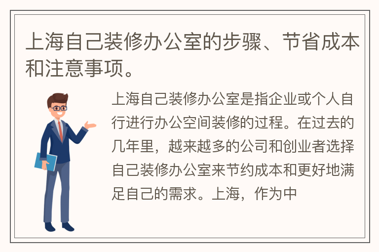 上海自己装修办公室的步骤、节省成本和注意事项。