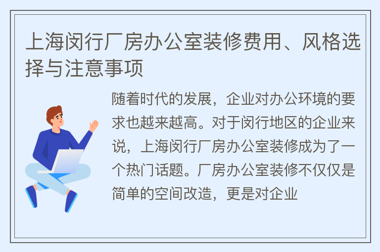 上海闵行厂房办公室装修费用、风格选择与注意事项