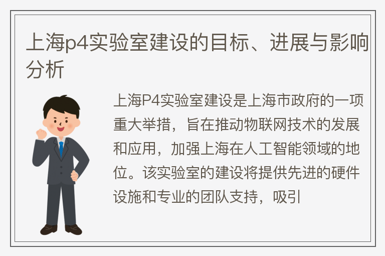 上海P4实验室建设是上海市政府的一项重大举措,旨在推动物联网技术的发展和应用,加强上海在人工智能领域的地位。该实验室的建设将提供先进的硬件设施和专业的团队支持,吸引......【点击详情】