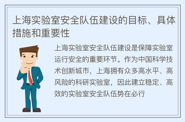 上海实验室安全队伍建设的目标、具体措施和重要性
