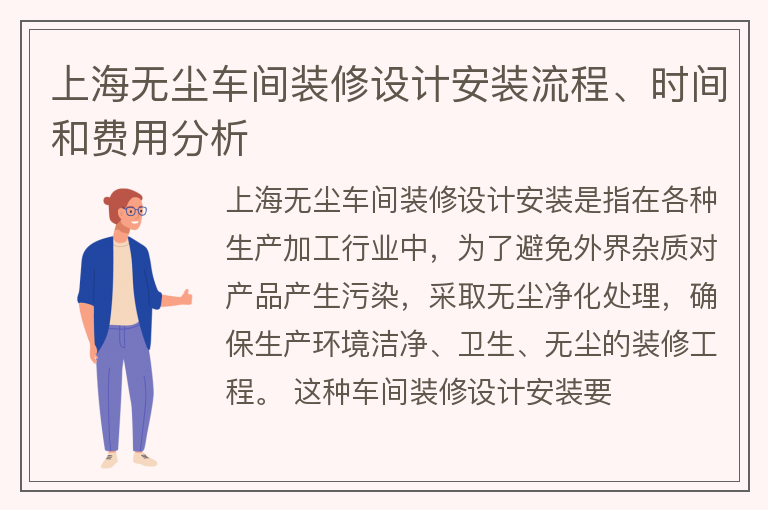 上海无尘车间装修设计安装流程、时间和费用分析