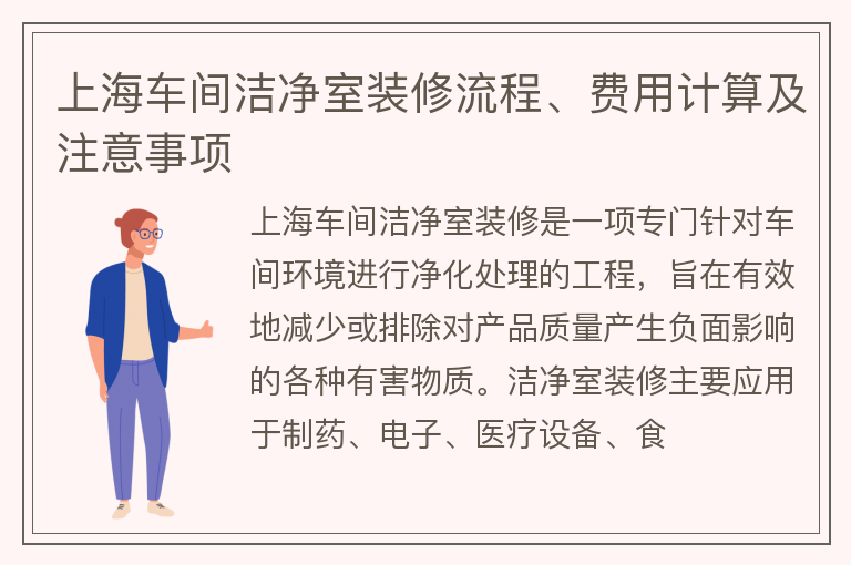 上海车间洁净室装修流程、费用计算及注意事项