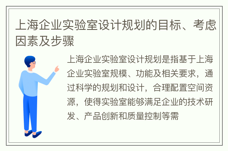 上海企业实验室设计规划的目标、考虑因素及步骤