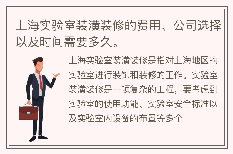 上海实验室装潢装修的费用、公司选择以及时间需要多久。