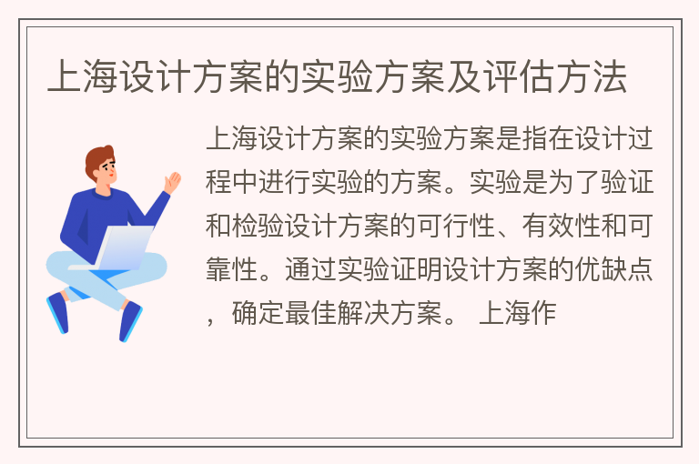 上海设计方案的实验方案是指在设计过程中进行实验的方案。实验是为了验证和检验设计方案的可行性、有效性和可靠性。通过实验证明设计方案的优缺点,确定最佳解决方案。 上海作......【点击详情】