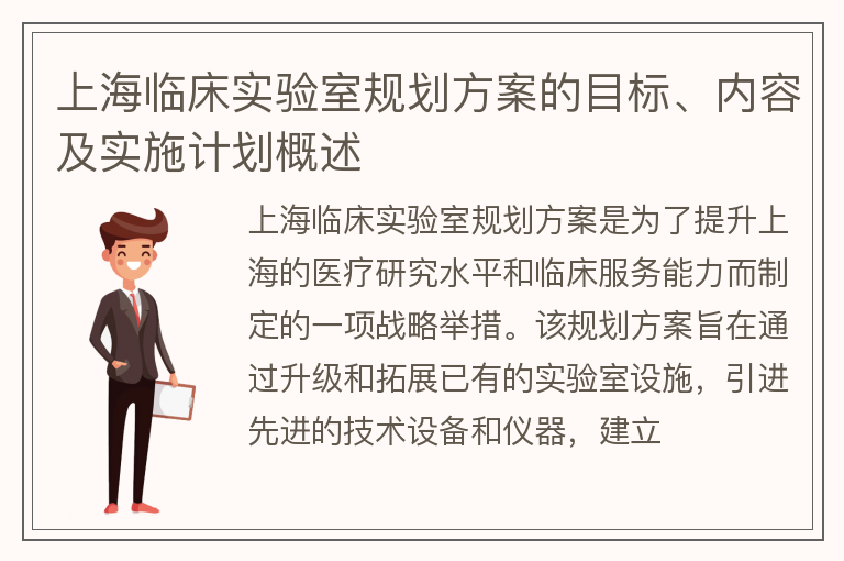 上海临床实验室规划方案的目标、内容及实施计划概述