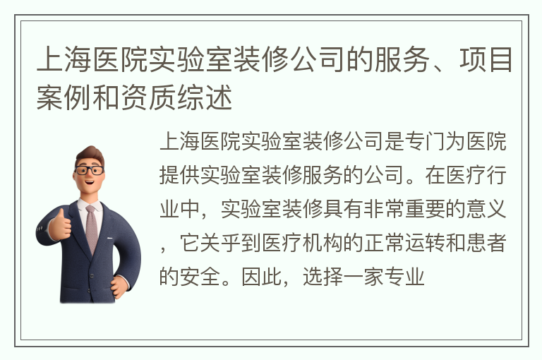 上海医院实验室装修公司的服务、项目案例和资质综述