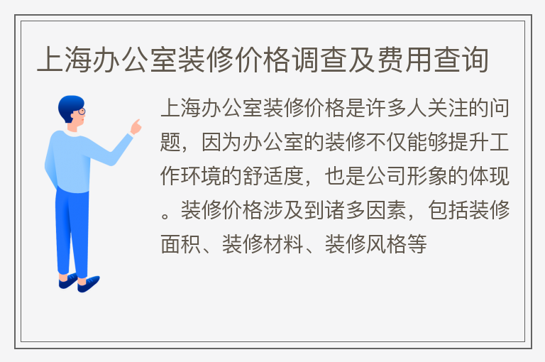 上海办公室装修价格是许多人关注的问题,因为办公室的装修不仅能够提升工作环境的舒适度,也是公司形象的体现。装修价格涉及到诸多因素,包括装修面积、装修材料、装修风格等......【点击详情】