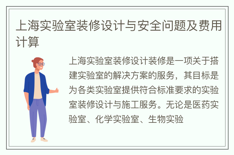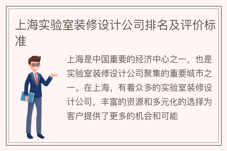 上海是中国重要的经济中心之一,也是实验室装修设计公司聚集的重要城市之一。在上海,有着众多的实验室装修设计公司,丰富的资源和多元化的选择为客户提供了更多的机会和可能......【点击详情】