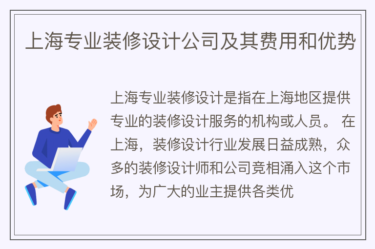 上海专业装修设计是指在上海地区提供专业的装修设计服务的机构或人员。 在上海,装修设计行业发展日益成熟,众多的装修设计师和公司竞相涌入这个市场,为广大的业主提供各类优......【点击详情】