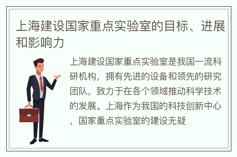 上海建设国家重点实验室是我国一流科研机构,拥有先进的设备和领先的研究团队,致力于在各个领域推动科学技术的发展。上海作为我国的科技创新中心,国家重点实验室的建设无疑......【点击详情】