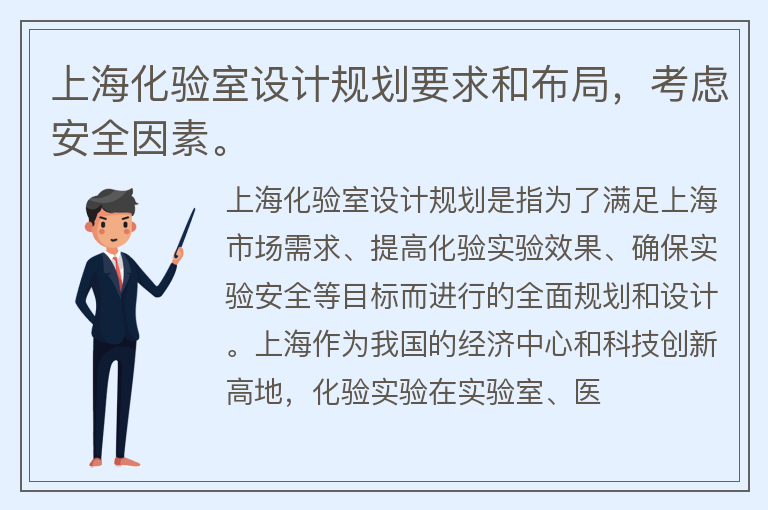 上海化验室设计规划是指为了满足上海市场需求、提高化验实验效果、确保实验安全等目标而进行的全面规划和设计。上海作为我国的经济中心和科技创新高地,化验实验在实验室、医......【点击详情】