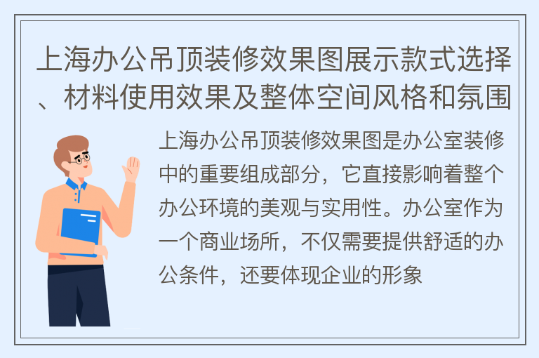 上海办公吊顶装修效果图展示款式选择、材料使用效果及整体空间风格和氛围。