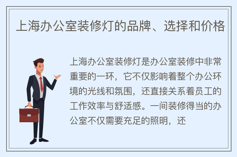 上海办公室装修灯是办公室装修中非常重要的一环,它不仅影响着整个办公环境的光线和氛围,还直接关系着员工的工作效率与舒适感。一间装修得当的办公室不仅需要充足的照明,还......【点击详情】