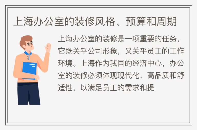上海办公室的装修风格、预算和周期