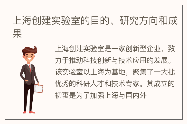 上海创建实验室的目的、研究方向和成果