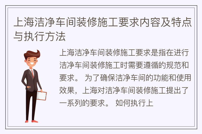 上海洁净车间装修施工要求内容及特点与执行方法