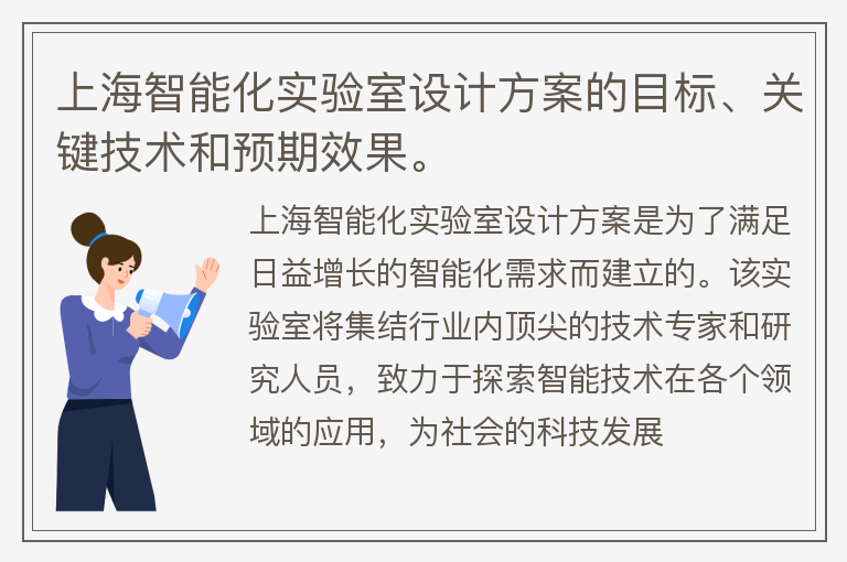 上海智能化实验室设计方案的目标、关键技术和预期效果。