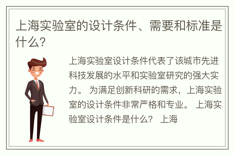 上海实验室设计条件代表了该城市先进科技发展的水平和实验室研究的强大实力。 为满足创新科研的需求,上海实验室的设计条件非常严格和专业。 上海实验室设计条件是什么? 上海......【点击详情】