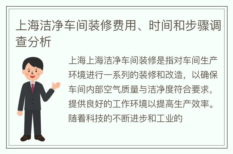 上海无尘工程装修是一种专业的装修施工技术,主要应用于对空气纯净度要求较高的场所。无尘工程装修以其独特的优势,在医疗、电子、食品等行业广泛应用。 上海作为中国的一线城......【点击详情】