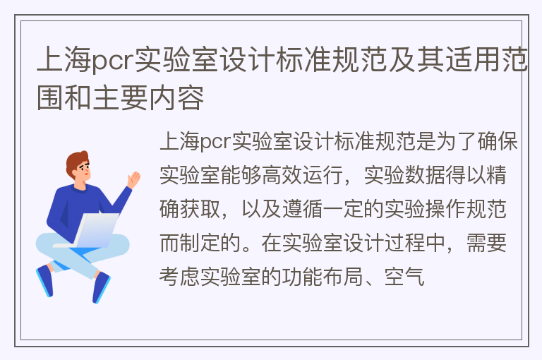 上海pcr实验室设计标准规范及其适用范围和主要内容