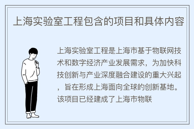 上海实验室工程是上海市基于物联网技术和数字经济产业发展需求,为加快科技创新与产业深度融合建设的重大兴起,旨在形成上海面向全球的创新基地。该项目已经建成了上海市物联......【点击详情】