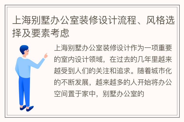 上海别墅办公室装修设计流程、风格选择及要素考虑