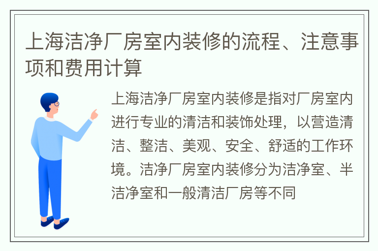 上海洁净厂房室内装修的流程、注意事项和费用计算