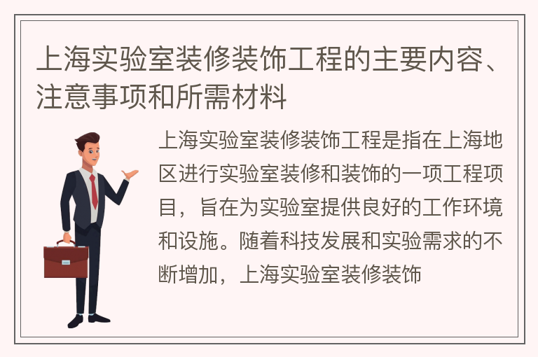 上海实验室装修装饰工程的主要内容、注意事项和所需材料